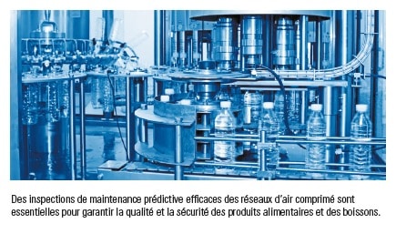 L’air comprimé est un fluide très largement utilisé dans l’industrie agroalimentaire et des boissons, qui l’emploie de diverses manières. Les applications types sont notamment les processus utilisant plusieurs compresseurs d’air reliés par des tuyaux pour fournir de l’air comprimé servant à déplacer des produits, faire fonctionner des outils pneumatiques ou à transférer des liquides à diverses fins dans les chaînes de production, pour le conditionnement et le nettoyage. Les fuites d’air comprimé peuvent ainsi causer de graves problèmes dans les usines de production d’aliments et de boissons.