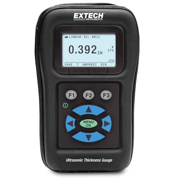 Le modèle Extech TKG150 est un enregistreur de données/une jauge d’épaisseur ultrasonique numérique. L’appareil compact et robuste permet des mesures d’épaisseur non destructives. Il propose des jauges d’épaisseur conçues dans un boîtier compact, portable et robuste, idéal pour une utilisation sur le terrain. La technologie ultrason permet d’effectuer des mesures d’épaisseur non destructives sur les structures principalement composées d’acier. Fourni avec un étui de protection, une bouteille de liquide de refroidissement de 2 oz, 2 piles AA, un transducteur de 5 MHz, une mallette de transport rigide, un câble USB et un logiciel d’exportateur.