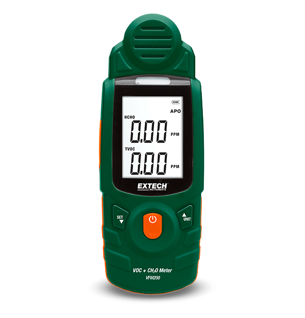 Le modèle EXTECH VFM200 mesure en temps réel des concentrations en COV (composé organique volatil) et en formaldéhyde.
