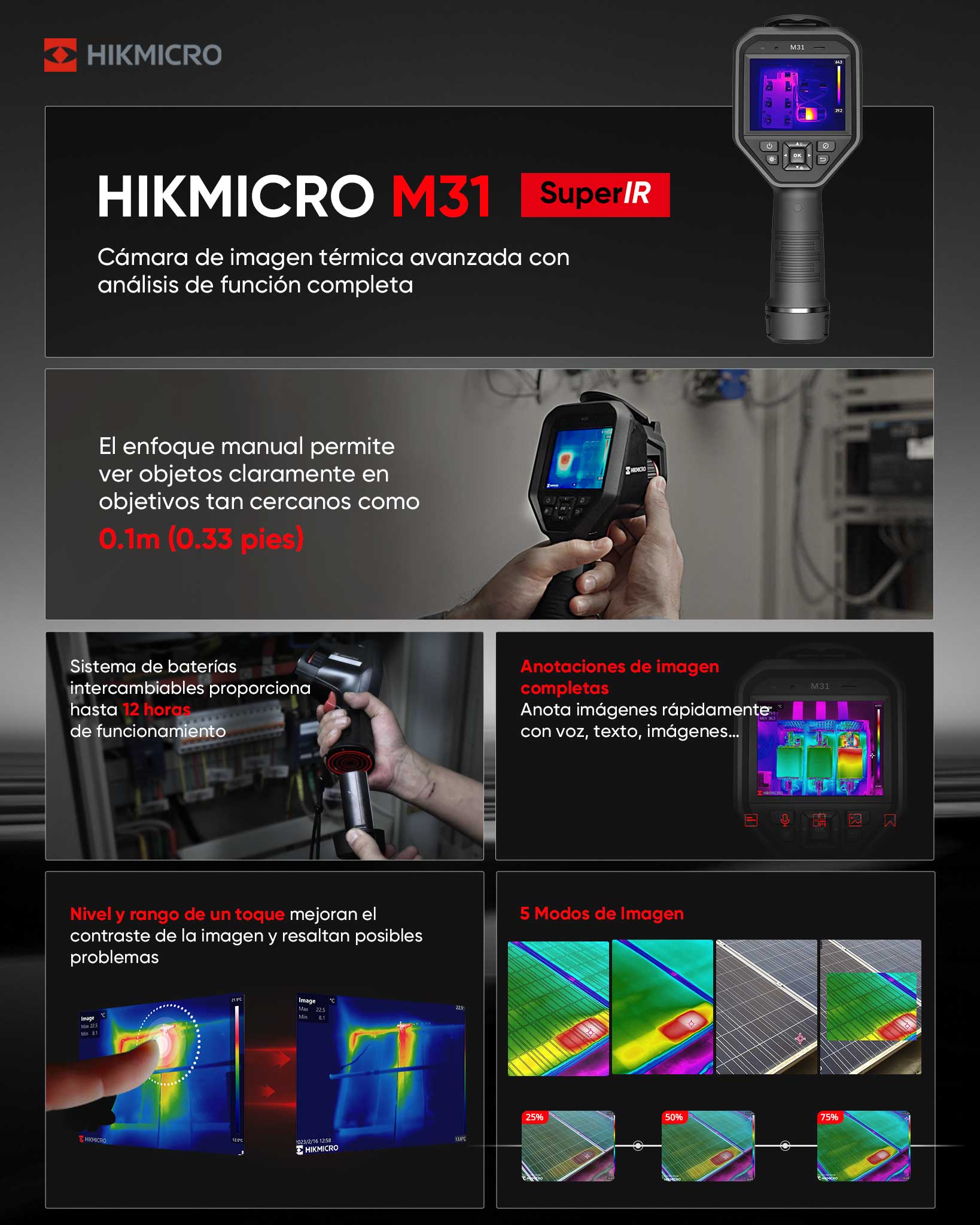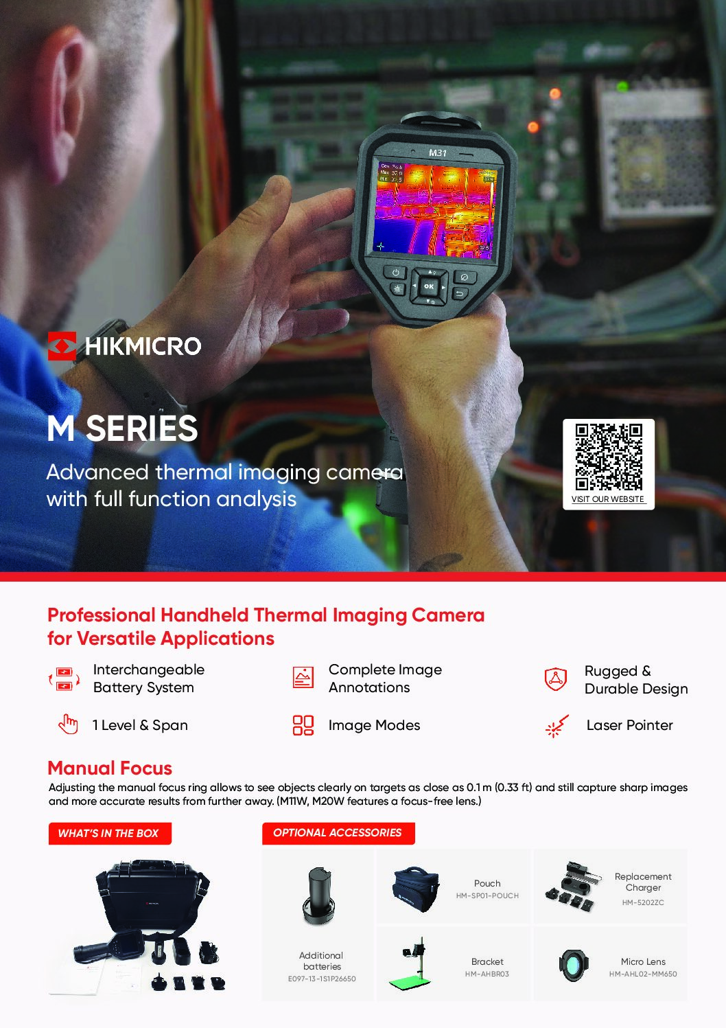 La nouvelle caméra portable HIKMICRO M31 qui vient remplacer la très populaire et appréciée M30 est spécialement conçue pour la mesure de la température. Elle est équipée d'un détecteur thermique d'une résolution de 384 x 288 pixels. Elle permet aux techniciens de détecter rapidement les points à haute température dans l'environnement.